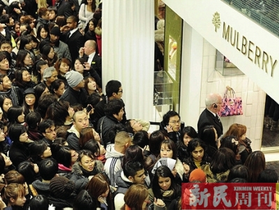 @史上第—最最搞:今天BBC新闻播放一年一度的Boxingday,英国各大奢侈品店销售的景象。看到那凌晨4点就开始在奢侈品店外排开的长龙满是亚洲人的面孔,和当店面大门被打开,他们如饥似渴地向店里冲。如果你们如此热爱奢侈品,为什么不能优雅地走进店里?奢侈品的意义是什么?(好吧,希望都是日本人和韩国人。)