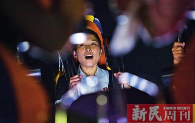 2012年8月8日,朝鲜平壤,一名妇女在游乐场里坐过山车。
