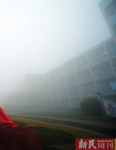 雾霾之下2月25日,济南受雾霾影响,全市中小学开学仪式全部在教室内举行。在一所学校,只有三名学生在空荡荡的操场上升旗。