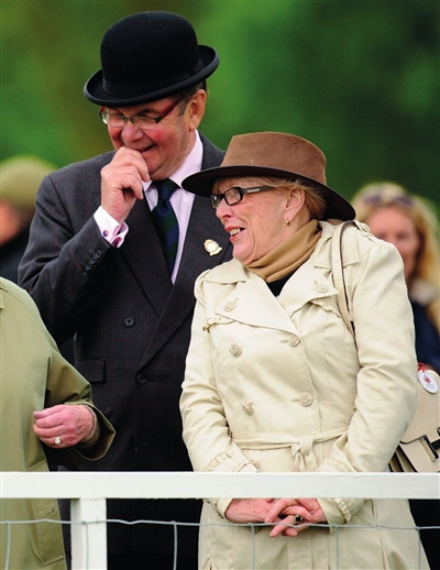 5月10日,英国伯克郡。英女王伊丽莎白二世一身村姑装扮参加温莎马展。