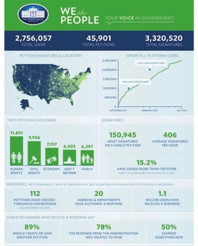 “我们请求美国政府取缔北京煎饼果子!”5月9日,美国白宫供民众向政府表达意愿的请愿网站“我们人民”出现了这样一则中文“请愿”内容。最近几天来,该网站多次出现疑来自华人的请愿,不少内容很无厘头。 “我们人民”是奥巴马政府在2011年9月1日开通的,旨在强化白宫与民众的联系,鼓励美国民众就国家面临的重要议题或自己关心的议题提交请愿书。按规定,若请愿的附议签名者在30天内达到10万,白宫就必须予以回复。 最近,该网站开始频繁出现疑来自华人的中英文请愿,不少有恶搞嫌疑,如要求“将豆腐脑的味道定为甜味”,“取消英语四六级考”等。该网站虽主要面向美国民众,但所有登录者都能注册账户和提交信息进行“请愿”。 目前,“我们人民”网站上有127个公开的请愿书正征集签名,其中签名者最多的是有关马来西亚大选涉嫌作弊的请愿,附议者已经达到22万人。 迄今为止,已得到白宫回应的请愿有110个,内容涵盖了政治、司法、人文、农业、学术等各个方面。 在这些请愿书中,有人希望奥巴马政府为枪支管控问题作出解释,也有人希望能够推动华尔街改革。还有人请愿希望能罢免阿肯色州的某位议员,强制为转基因食物添加标签等。网站上也曾出现涉及在美华人的请愿,今年4月初,美国华人团体曾联手在“我们人民”网站上发起请愿,要求白宫就1882年美国国会通过的《排华法案》“进行道歉”。 对于有恶搞嫌疑的请愿,如签名数已超过要求,白宫也有可能回应,例如,今年1月,白宫回复了网民要求建造《星球大战》“死星”的请愿,回复称,该计划太浪费钱,需83万年才能建成,不划算。
