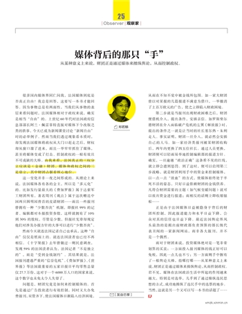 而对于财团来说,投资媒体绝对是一笔非常划算的买卖:一方面投入报刊媒体的钱正好可以免税,因此一点儿也不亏;另一方面则手中握有了一根舆论大棒,指哪打哪……从某种意义上来说,财团正是通过媒体来操纵舆论,从而控制政权。君不见,媒体在法国政治生活中所起的作用越来越大,特别是对选举,几乎到了通过操纵选民思想的方式,成功地操纵了选民手中的选票的地步。当然,这就是另一个又可以写一本书的话题了……