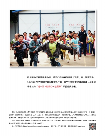 四川省中江县的辑庆小学,孩子们在简陋的操场上飞奔,脸上快乐洋溢。