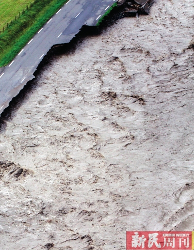 洪水肆虐6月19日,法国Villelongue,当地遭受洪水侵袭,致路面垮塌。