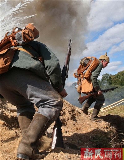 2013年8月25日,俄罗斯加里宁格勒,军方在当地举行纪念活动,重现了1914年著名的贡比涅之战的场面。