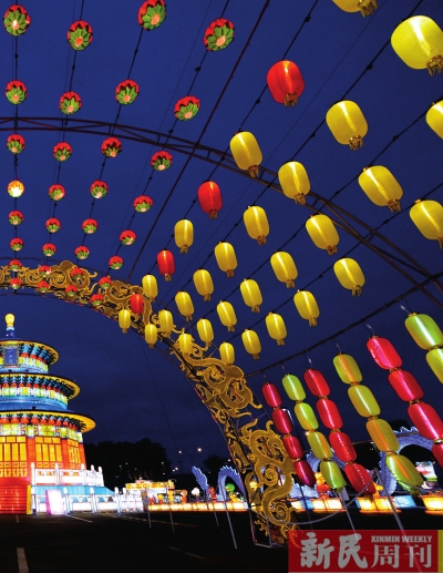 11月21日,为迎接圣诞节举行的全球冬季仙境灯展在美国亚特兰大开幕,灯笼打造出北京天坛的模型。
