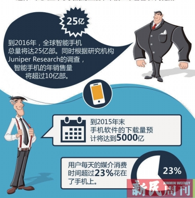 移动网络时代,越来越多的人成为“手机奴”,看新闻、发微博、玩游戏、交朋友……最新数据显示,2013年全球共有18.3亿部智能手机,每位手机用户平均每天查看150次手机。换言之,除了休息时间外,每人平均每6分钟查看一次手机。我们的生活已经被手机主宰。