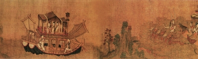璃堂人物图》卷的后半部分(美国大都会博物馆藏有此图摹本)。画面内容表现的是唐玄宗时著名诗人王昌龄在任江宁(今江苏南京)县丞期间,于县衙门旁建琉璃堂以诗会友的场面。