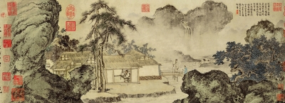 因其传承有序,加之笔墨精妙,后代画家多受此影响,甚至倾心临摹。这其中,画坛大师张大千与谢稚柳就是典型代表,特别是谢稚柳,曾着力于研究李成绘画一派,因此对王诜的作品体会尤多。为此,他甚至吃了不少苦头。他曾藏有王诜的另一幅作品——《烟江叠嶂图卷》,原本是打算为上海博物馆收下的,但多数专家却认为此画不真。凭着多年对王诜笔墨的了解与钻研,最终谢稚柳不顾众议,自己花巨资买了下来,又做了详尽的考证,其本意是为了保护国宝,不至失散。但不幸的是,到了1964年“四清”时期,谢稚柳成了“投机倒把”分子,此图也随之没收进了上博。直到云开日出之后,此图得到了有关方面的重视,不仅确认其为真品,最终还定为国家一级文物。1997年1月,谢稚柳与夫人陈佩秋感慨万千地将此图正式捐赠