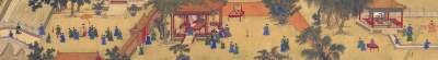 由于本幅有徽宗题名与画押,此作一度被认为是赵佶所画,后经学者考证,实为宣和画院画家描绘徽宗赵佶宫中行乐的作品,而图中抚琴者,正是赵佶本人,这也为后人留下了这位“翰墨风流,行事荒唐”的亡国之君最生动的形象。