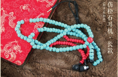 传统的如书签、笔记本、冰箱贴、钥匙扣、鼠标垫、手机壳等等,比较特别的有制成“肃静”、“回避”字样的红色行李牌,复古创意的结婚红包,写着“朕就是这样汉子”的折扇……最最奇葩的是朝珠耳机,朝珠是清代朝服上佩戴的珠串,代表品级地位的,现在以此式样制成了手机耳机,而且有仿松石、蜜蜡、珍珠、檀木等各种材质,真正把传统与时尚结合了起来。