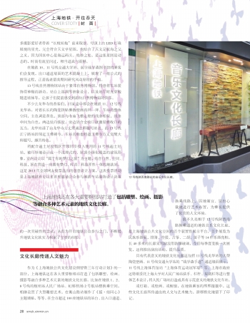 具有代表意义的地铁文化长廊还包括11号线龙华站的大型陶瓷壁画、11号线交通大学站的“钱学森手迹”通道墙面展示、11号线上海体育馆站“上海体育运动冠军墙”等。上海市政府还特别委托上海大学对人民广场站扶手、栏杆、隔离栏等进行整体艺术设计,将人民广场站打造成具有示范意义的地铁文化车站。 或灯箱、或壁画、或橱窗,在地铁乘客的熙熙攘攘中,这些文化长廊所传递出的人文与艺术魅力,潜移默化地留下了印记。