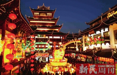 豫园的后门紧连着大名鼎鼎的城隍庙。城隍庙是上海著名的道教宫观,始建于明代永乐年间(1403-1424),距今已有600年的历史。从明代永乐到清代道光年间,上海城隍庙的庙基不断扩大,宫观建筑不断增加,最为繁盛时期,总面积达到49.9亩土地,约3.3万多平方米。如今,城隍庙几经兴废,恢复了往昔的繁华热闹,一年四季香烟缭绕,肃穆庄严,香客络绎不绝。值得一提的是,供奉城隍爷的大殿四周,有中国画大家戴敦邦先生创作的大型壁画《群仙欣会图》,自称“民间艺人”的戴敦邦先生是当代人物画巨匠,所绘作品皆立足于唐诗宋词、古典名著、仙佛人物等题材,从艺60多年来佳作无数,被誉为最具“中国派头”与“华夏神韵”的一代宗师。他所绘