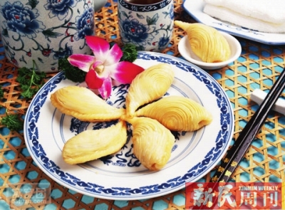 春风松月楼市上海老字号的素菜馆,经典菜松月腐乳肉,以素仿荤,做出来的“肉”有皮有肥有瘦,一尝倾心;还有“素蟹粉”,以土豆、胡萝卜等为原料,充分发挥素菜本身的鲜味,加之糖、醋、姜等调味,模拟蟹粉之美味,鲜腴逼真而无腥味,是一道老少皆宜的佳品菜肴。再如独特的海棠糕,做法地道,香、糯、烫、甜,每每一出炉就排起长队一抢而空,甚至有人说,哪怕不买,光是看着老师傅在那烘糕,都是一种享受;而它家的素菜包更是名闻遐迩,十分受人欢迎,是用精白面粉做皮,馅心则是用青菜、面筋、冬菇、冬笋、五香豆腐干剁碎后配以香油、糖等调味品制成,将包好的素菜包上笼蒸熟后,皮白松软,馅心则绿中生翠,鲜艳悦目,一开笼就满室生香,食之味美爽口,百吃不厌。