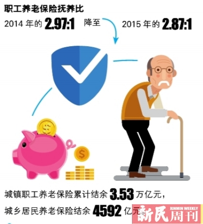 根据人社部社会保险事业管理中心发布的《中国社会保险发展年度报告2015》显示,城镇职工与城乡居民两项养老保险累计结余近4万亿元。不过,职工养老保险抚养比继续下降,不到三个人就得“养”一个人;而东北三省的养老金全面“沦陷”。