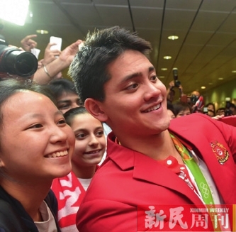 21岁的新加坡“飞鱼”斯库林在里约奥运会男子100米蝶泳决赛中,以50秒39的佳绩力挫美国名将菲尔普斯夺得奥运金牌,刷新了奥运会纪录。斯库林从小仰慕菲尔普斯,8年前曾与偶像在新加坡合照。