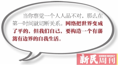 当你察觉一个人人品不对,那么在第一时间就切断关系。网络把世界变成了平的,但我们自己,要构造一个有藩篱有边界的自我生活。