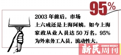 在5%的“上海阿姨”中,原本户籍就在上海的只占2/5,3/5都是嫁到上海的新上海人。