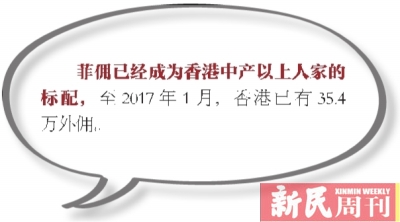 上个世纪,TVB的港剧风靡之时,大陆的剧迷们也第一次对菲佣这个单词有了概念。其实,菲佣的存在有着悠久的历史——上世纪70年代,菲律宾经济面临困难,时任总统的费迪南德·马科斯修改劳工法,通过对海外输出劳工的方式降低国内的失业率,并利用海外劳工的汇款来改善国家经济状况,而香港因其地理位置和经济水平自然成为了菲佣的主要目的地。经过数十年的发展,菲佣已经成为香港中产以上人家的标配,至2017年1月,香港已有35.4万外佣。