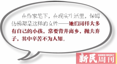这样的故事,直到现在都还在续写:前不久传遍朋友圈的《我是范雨素》,就出自一位从湖北到北京打工、做育儿保姆的女佣范雨素之手:“我的生命是一本不忍卒读的书,命运把我装订得极为拙劣。”“我运气真好,我做育儿嫂的人家是上了胡润富豪排行榜的土豪。男雇主的夫人生的两个孩子,已是成年人了。我是给男雇主的如夫人看护婴儿的。”……来到帝都的新时代保姆和从前几乎没有多少两样:生活困难,缺少技能,丈夫没出息,不能忍受乡村生活的艰苦枯燥,自己的孩子撇在一边只能偶尔兼顾……如范雨素所写:“小婴儿睡觉不踏实,经常半夜三更醒来。我跟着起来给孩子喂奶粉,哄她入睡。这时,我就想起我在皮村的两个女儿。晚上,没有妈妈陪着睡觉,她俩会做噩梦吗?会哭?想着想着,潸然泪下。还好是半夜三更,没人看见。”