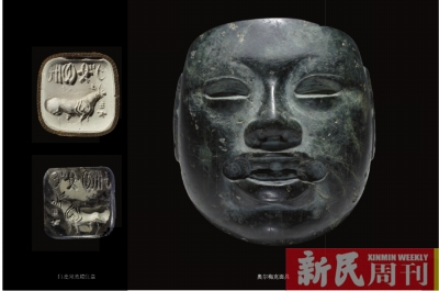 公元前900—前400年的“奥尔梅克面具”也颇值得一提,这件出土于墨西哥的面具尺寸非常小,并不能戴在脸上,据专家考证其可能是首饰或头饰的一部分。该面具出自奥尔梅克人之手,他们在公元前1400到前400年间统治着墨西哥,在中美洲建立起第一批城市,发展出文字,很有可能还创造了最早的历法。与古埃及人一样,奥尔梅克人也建造金字塔,将死者的尸体制成木乃伊。由于对这一地区有着上千年的影响,因此,奥尔梅克文化被称为中美洲的“母文化”。
