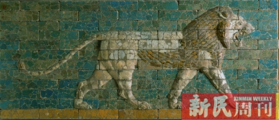 比如“迈步狮纹镶板”,新巴比伦(美索不达米亚平原)时期的无名匠师创作于约公元前604-前562年。那是新巴比伦统治者尼布甲尼撒占领耶路撒冷之后,他请能工巧匠在巴比伦的游行大道上设计了高端大气上档次的镶板釉砖——大步走狮子。只见雄狮血盆大口,有如怒吼,器宇轩昂,非同凡品。