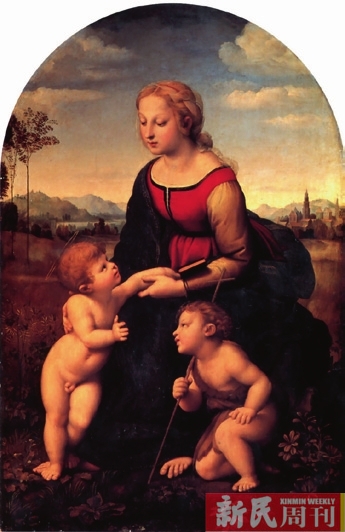 简介:《花园中的圣母》又译名《圣母子和施洗者圣约翰》,这幅圣母像上一共画了三个人物,圣母、耶稣与约翰。但人物没有一点宗教标签。圣婴与约翰都画成幼儿形象。年轻的圣母,就像带着两个孩子的民间母亲。