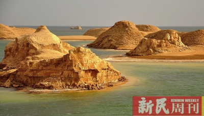 ◆ 柴旦木的水上雅丹算是在中国绝无仅有的了。由于大气热效应的作用,盐湖的面积逐渐扩大并逐步淹没周围的雅丹群,形成蔚为壮观的水上雅丹。湖中水草丛生,将整个湖面切割成蔚蓝色和清绿色,再与岸边金黄的芦苇和沙漠相对应,再多的描述都不及眼前所见的十分之一。