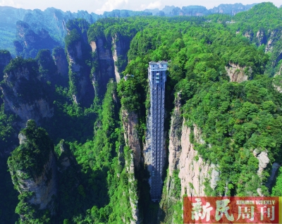 世界上最高户外观光电梯——张家界百龙天梯。