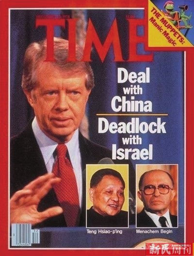 邓小平的头像与美国总统吉米·卡特同时出现在《时代》周刊的封面上,上面写着:与中国打交道,与以色列免谈。