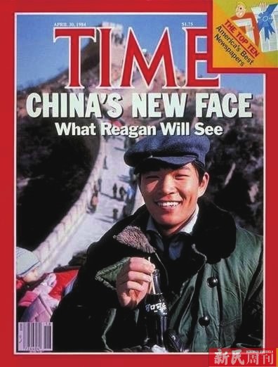 “中国的新面貌,里根将会看到么?”一个普通的中国人手里拿着可口可乐,面露微笑,很直白地表现了中国正在开放,人们将要开始新的生活的景象。当然这也是对里根总统访华的一篇报道。