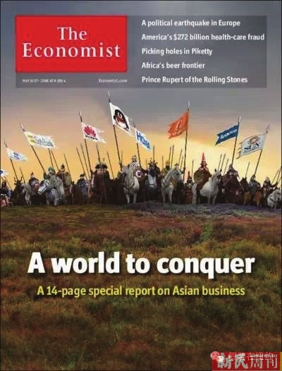 《经济学人》封面文章关注亚洲商业与企业,腾讯、华为、阿里巴巴、联想、海尔等中国企业的logo作为战旗出现在显著的位置。这个特别报道的导语写道,“亚洲商业正在复苏。亚洲的跨国公司将改变我们所有人的生活方式。”