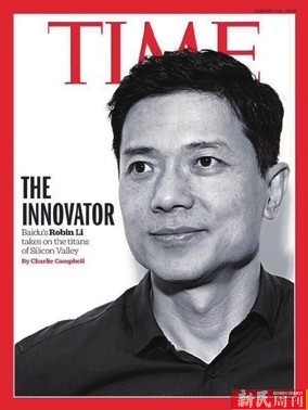 《时代》周刊刊发了对百度公司董事长兼首席执行官李彦宏的专访。并且李彦宏以“the innovator(创新者)”的称谓,成为了本期亚洲版的封面人物。这是中国互联网企业家第一次登上时代周刊封面。