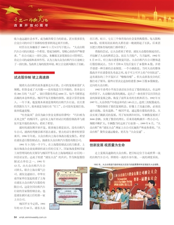 勇敢的尝试,让大众看到了希望。浦东大众股份制成功后,不仅解了大众的燃眉之急,而且当月投产,当月赢利。1992年5月19日,经上海市建委批复同意,大众出租汽车公司整体进行股份制试点,当年7月和8月先后发行了B股和A股,并着手创建一种全新的企业制度。一个小插曲是,当时大众的整体股改并不在建委优先考虑之列,处于可上可不上的“中间状态”,还有浦东的三个开发区正“嗷嗷待哺”,但大众准备充分的汇报打动了领导,最终市里决定追加给建委2500万股B股额度,定向给大众出租。