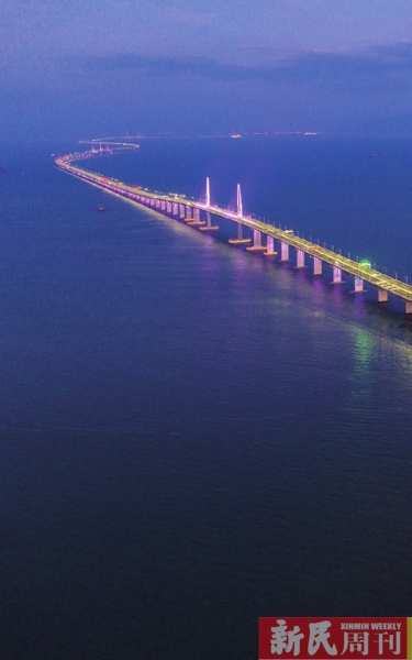 12.3,广东珠海,通车后的港珠澳大桥夜景。