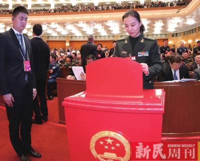 3.11,十三届全国人大一次会议在北京人民大会堂举行第三次全体会议。这是代表投票表决中华人民共和国宪法修正案草案。