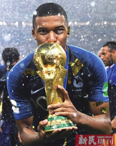 7.15,2018俄罗斯世界杯决赛,法国4-2克罗地亚。冠军颁奖典礼举行,姆巴佩亲吻大力神杯。