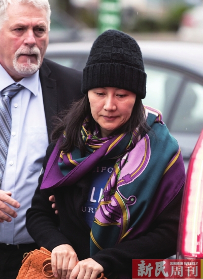 12.12,加拿大温哥华,在获准保释后,华为CFO孟晚舟在安保陪同下出门。