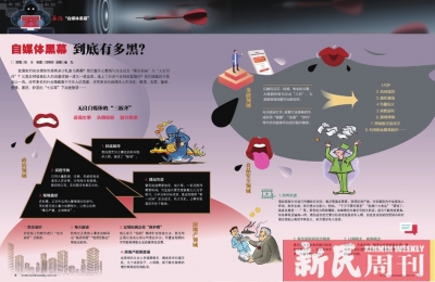 作为社会的瞭望者、观察者,今年9月10日,新民周刊率先打响《自媒体黑幕》第一枪,在封面报道中,明确指出当下自媒体的两块短板——道德底线与法制监管,深度剖析了自媒体黑幕的几大顽疾。虎牙、快手等直播平台“挖墙脚大战”,不惜以薪水盘剥甚至逝去生命为代价;炮制谣言、疯狂洗稿,缔造10W+荣耀的写手竟是小学、初中学历的乡村农妇;套着知识付费的壳子,新世相课程收购20元盗版课程,转手贩卖却高达上千元;假新闻炮制者陈杰人,借“舆论监督之名”将自己包装成“法律人”“互联网大V”,开设二十多个账号牟利,一年流水过亿元,购置房产10余套。