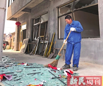 “咔啦、咔啦……”无数碎玻璃被清理或被踩上去发出的声音,萦绕在村庄的四面八方。所有房屋没有留下任何一块完好的玻璃门窗,室内被破坏得一片狼藉。坍塌的吊顶、损坏变形的窗框,在早春强劲的风中晃动。几平方公里内,无一幸免于此。许多房间里,还能看到伤者留下的斑斑血迹,来不及清理。