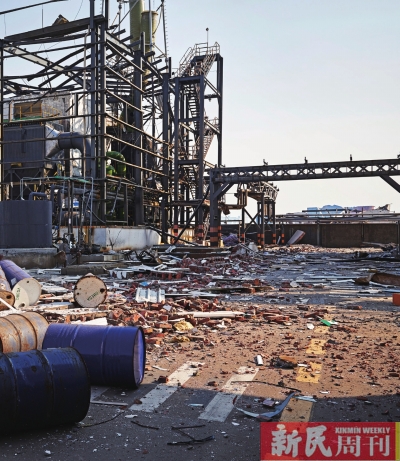 3. 爆炸点附近的工厂也是严重损毁,一片狼藉。