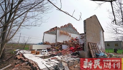 4. 距离爆炸点700米左右,六港村的一处旧瓦房墙体坍塌,房顶不知所终。