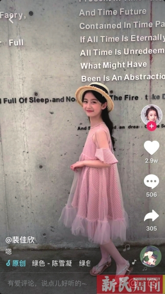 在拍摄的间隙,彤彤非但没有休息,反而精力十足地打开抖音、快手开始直播,与自己的粉丝互动。“她和粉丝互动时就像个成年人,聊的东西都很‘社会’。”龚明告诉记者,当时彤彤的父母就在拍摄现场,他们不但对此无动于衷,还挺高兴他们的女儿能有这么多粉丝。