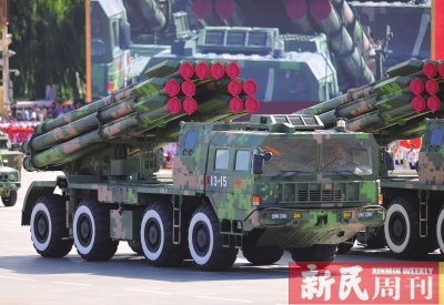 2009年国庆阅兵分列式中的03式远程火箭炮方队,听听“远火”这个名头,谁都会明白这是个“大家伙”。比起我军早年使用的81式火箭炮,“老前辈”的发射定向管里塞的是122毫米口径火箭弹,而03远火的火箭弹足足多出一倍有余,达到300毫米,重量更是122火箭弹的近十倍。如此一来,其破坏力和覆盖范围都不可同日而语。
