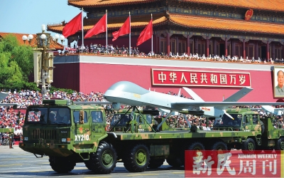 近年来,中国空军除了发展有人驾驶飞机,在无人机方面也取得重大进展,这是在2015年9月3日纪念抗战胜利70周年大会后的阅兵环节,中国空军新一代攻击-1察打一体无人机接受检阅。 (一些照片作者未及联系,请与本刊联系)